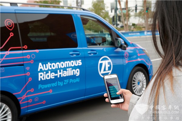 在 2019 年的国际消费电子展(CES)上,采埃孚将发布一款没有方向盘和踏板的机器人出租车(robo-taxi),以展示其技术将如何助力打造新的城市出行方式。用户可以通过智能手机或平板电脑来预约出租车,出租车也将通过自主驾驶至乘客上车地点,继而将他们送抵目的地。