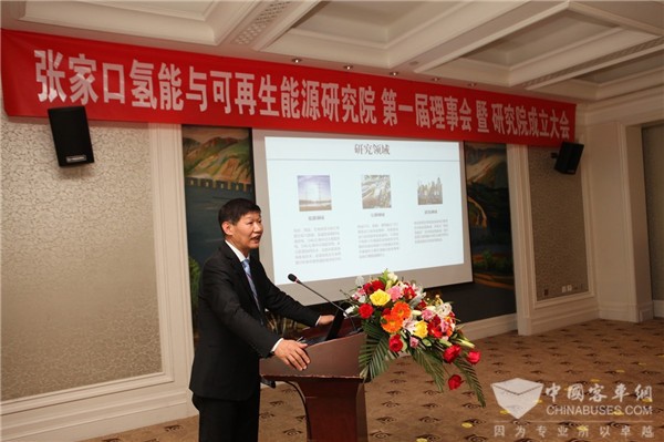理事会理事长、张家口市人民政府市长武卫东对研究院的成立表示祝贺,并指出张家口作为国家可再生能源示范区正在开展三大创新、四大工程和五大功能区建设,研究院可以为2022年冬奥会的交通保障提供做出贡献,加速燃料电池商用车在张家口的落地和大规模应用。