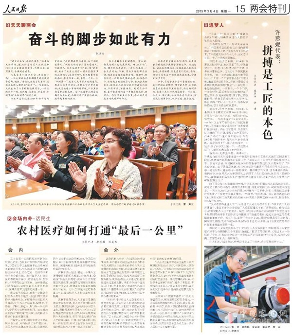 作为管理100多名职工的工段长,忙碌是许燕妮的日常。当选全国人大代表后,她更忙了。但是,她每天还是抽出时间来充电提升自己,“学习如何更好地履职,如何处理职工群众反馈的问题。”“我来自企业一线,工人的心声最有体会,一定要说出工人的心声。”——《工人日报》