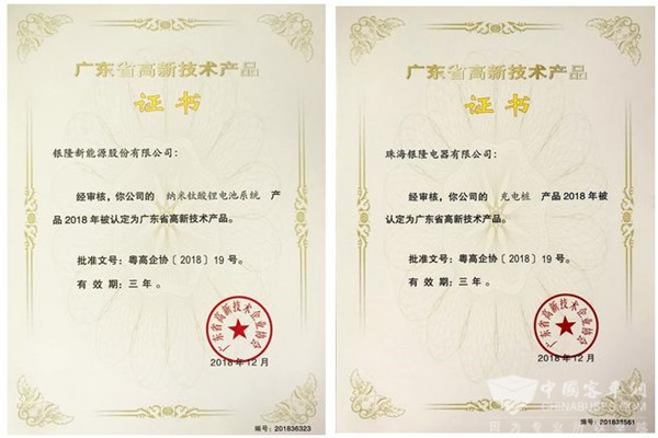 同时,银隆纳米钛酸锂电池系统、充电桩两类产品被认定为“广东省高新技术产品”。这是对银隆技术研发和自主创新的肯定和认可。