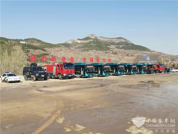 2019年4月1日,山东省公安机关综合训练基地举行了公交车安全防范应急处置科目演练。此次演练的科目包括:乘客抢夺方向盘应急处置演练,公交车起火应急处置演练,公交车疑似爆炸物应急处置演练和公交车反劫持应急处置演练。此次安全演练,结合了公交车运行过程中的安全防护实际情况,取得了圆满成功。