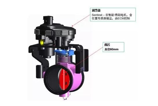 ETV调节器内部有一个电机,当接收到ECM的指令后,电机驱动与其连接的动阀片转动到指定角度。