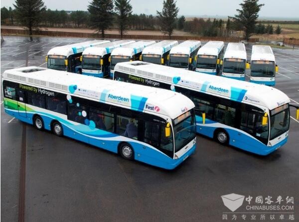 阿伯丁的氢能巴士计划收到了两项来自于欧洲的资助,目前已发展成为由First Group和Stagecoach运营的车队,车队旗下拥有10辆燃料电池公交车。