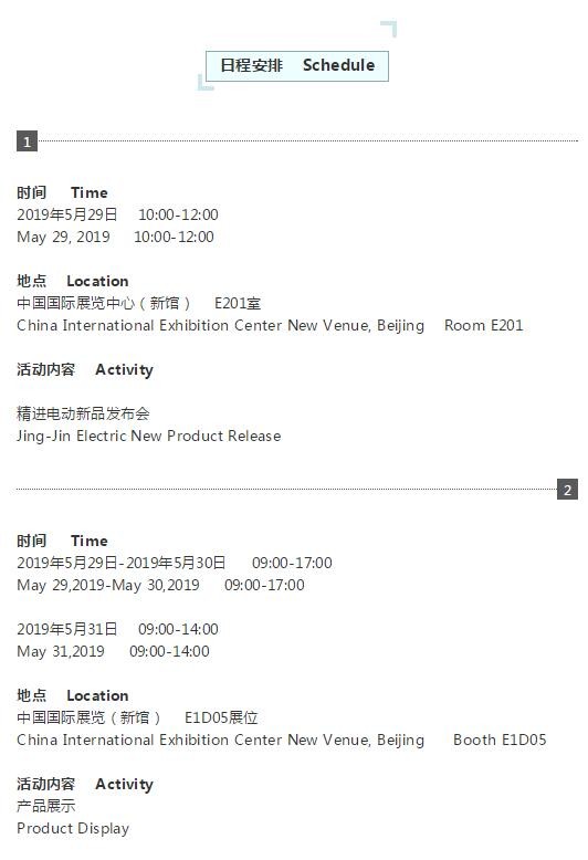 届时,精进电动将参与此次展览会并发布三款商用车神秘“黑科技”,且有许多明星产品同时展出。在此特邀您在百忙之中莅临参观指导,精进电动竭诚欢迎您的到来!