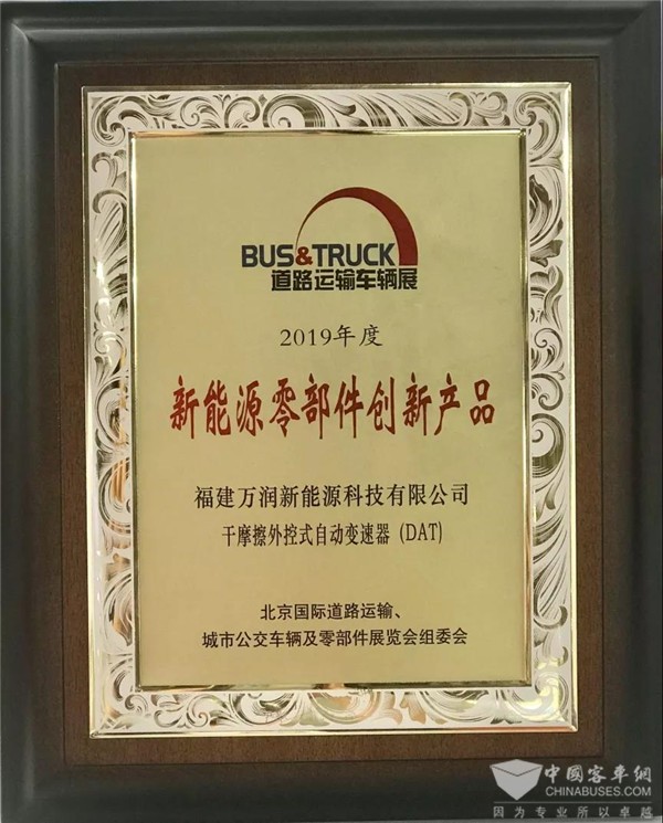 本次带来的“干摩擦外控式"自动变速器(简称DAT变速器)。获得了北京国际道路运输、城市公交车辆及零部件展览会组委会颁发的“新能源客车零部件创新产品”奖项。