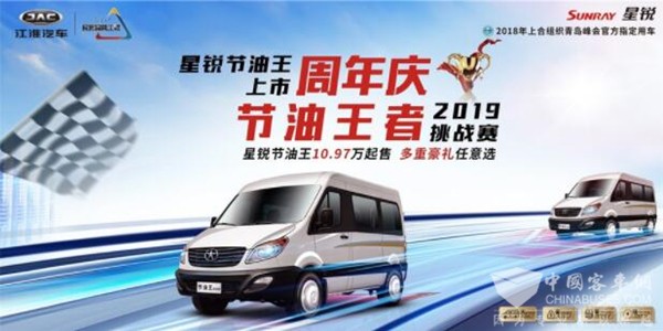 自2019年5月25日,第五届江淮星锐节油王者挑战赛初赛在上海打响后。以节油之名,上演了一场节油达人之间的省油进阶对决,并用星锐节油王创造了百公里4.3升超低油耗。上海首战结束之后,挑战赛将会在6月来到东莞、长沙、武汉、宁波、郑州等多个城市,冠军选手将有机会晋级复赛,最终争夺总决赛终极大奖。另外,在激烈的比赛之余,星锐节油王白金版的推出和多重豪礼任意选的超值钜惠,也带来了省钱省心的绝佳组合,提升了消费者的用车体验。