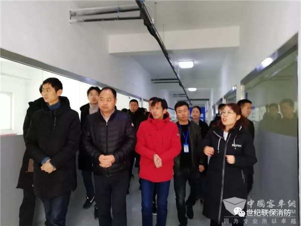 在殷部长的带领下参观了世纪联保智能自动化生产车间、实体火试验场地、产品检验室。