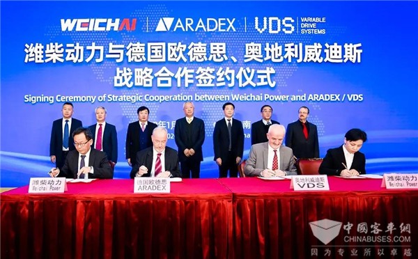 2020年1月15日上午8点,潍柴动力分别与德国欧德思公司、奥地利威迪斯公司在山东济南签署战略合作协议,正式开启合作新征程。山东省副省长凌文、山东省相关领导以及媒体代表等,共同见证了这一历史时刻。