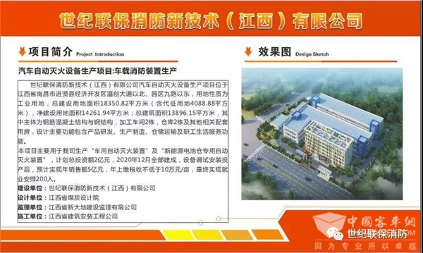北京世纪联保消防新技术股份有限公司成立于2000年,是一家专业从事客车消防、安全产品研发、生产、销售的科技型企业。公司位于北京市大兴区,年产值约3.5亿元。世纪联保(江西)有限公司建设基地,将依托南昌优越的地理位置和发达的物流体系,将世纪联保产品更好服务于华南各客车厂、乘用车厂,也是世纪联保布局全国、走出国门,做大做强的战略举措。