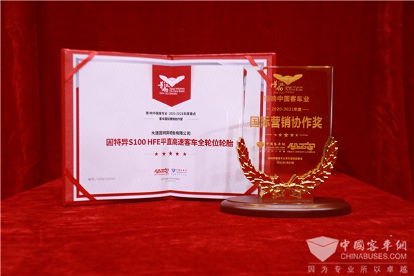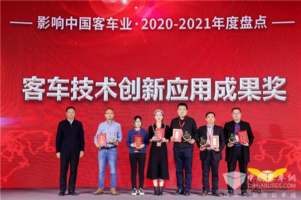 活动当晚,“第15届影响中国客车业年度盘点活动”评选结果正式出炉,经过专业读者投票与评选会专家综合评定,大连固特异轮胎有限公司推送参选的S100 HFE平直高速客车全轮位轮胎、公交RFID系列大中型电动公交车轮胎两款产品从近百款参选产品中脱颖而出,荣膺影响客车业客车业“2020-2021年度“客车国际营销协作奖”以及“客车技术创新应用成果奖”。