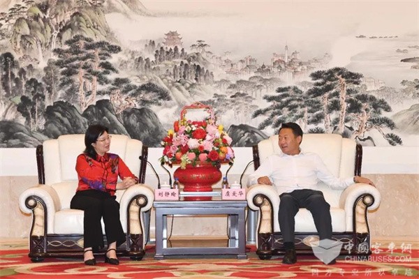 签约开始前,虞爱华书记与刘静瑜董事长座谈交流,罗云峰市长等领导参加座谈。