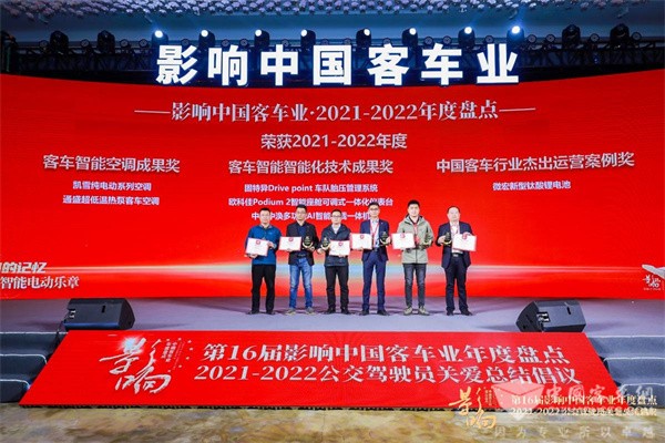 本届评选活动,继续围绕评选年度最具影响力的客车产品、客车技术全面展开。活动下午,“第16届影响中国客车业年度盘点活动”评选结果正式出炉,凭借一以贯之的精益品质与市场口碑,微宏动力推送参评的新型钛酸锂电池产品凭借在湖州城际城乡公交出色的运营表现,在诸多运营案例中脱颖而出,一举斩获2021-2022年度“中国客车行业杰出运营案例奖”。