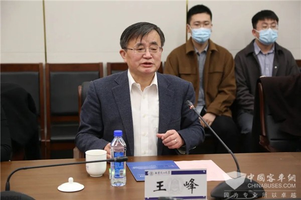 王峰介绍了北京化工大学的学科优势、人才培养情况及近年来与公司合作情况。他高度评价亿华通在行业内的贡献和地位,对亿华通长期以来为化工大学人才培养、科学研究等方面助力贡献表示感谢。他强调,学校“双一流”建设需要名企业支持,期待与公司深化合作,不断创新合作模式,引领、推动相关学科、人才培养和产学研协同快速发展。