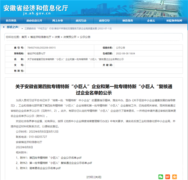 中科中涣从2020年安徽省“专精特新”中小企业、2021年安徽省专精特新冠军企业,到今年的国家级专精特新“小巨人”企业,三年时间完美实现了“三级跳”,不断受到社会各界及政府的认可与肯定。