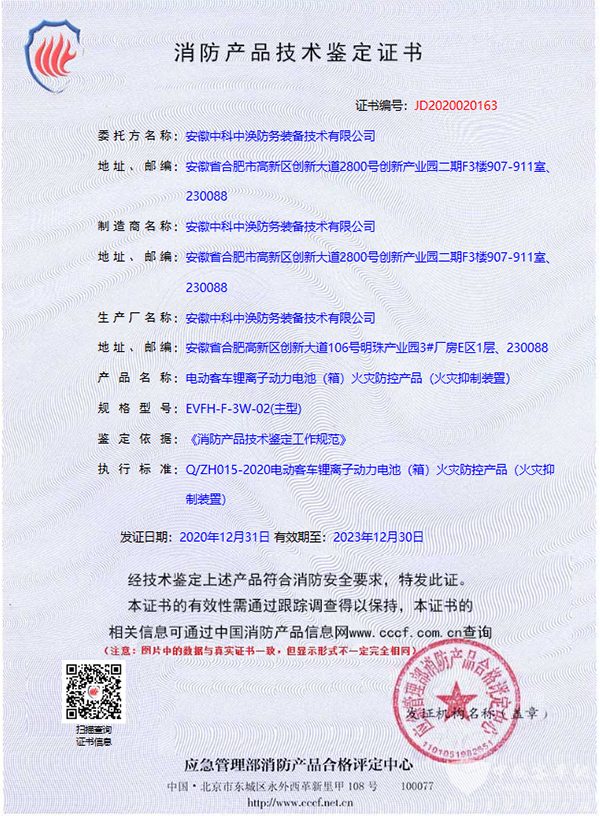 中科中涣参与 客车锂离子动力蓄电池箱火灾防控装置标准实施