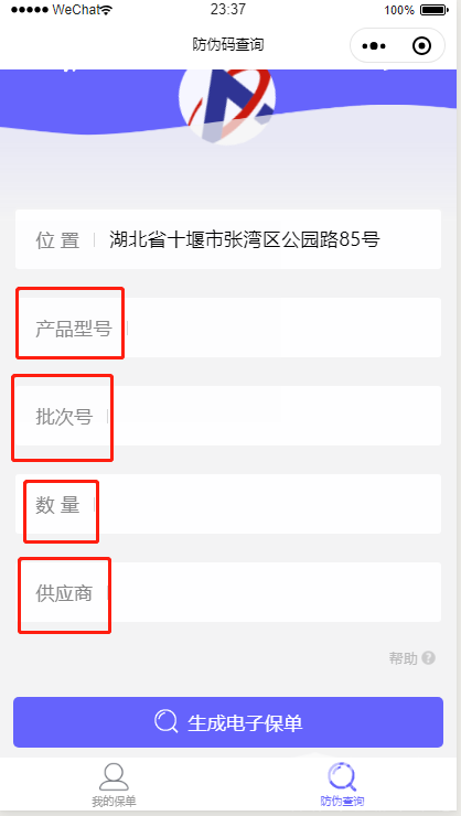 系统自动加载当前您所在位置,产品型号、批次号(产品本体永久性标识)、数量、供应商。