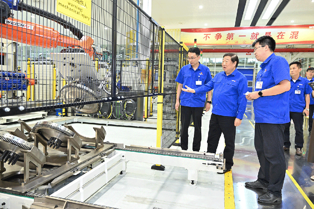 随后,谭旭光来到潍柴液压传动有限公司二期技改项目现场,详细调度项目建设情况,要求已经投产的4条产线要全面达产,正在安装调试的4条产线确保10月20日前全部打通投用,全力满足工程机械对高端液压的配套需求,为未来全面进军全球高端液压系统做好产能保障准备。