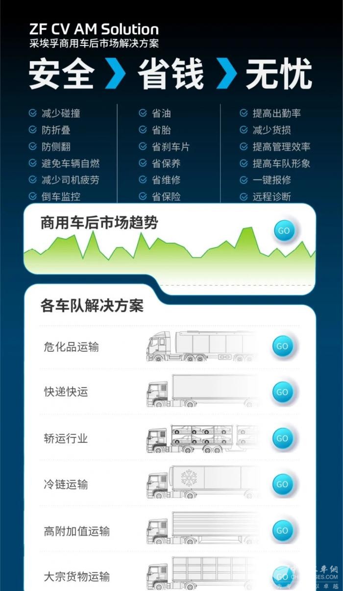 您想了解的采埃孚商用车资讯都在这里,躺着就能看,看了就能问,问了就能买,一键解锁商用车后市场解决方案的秘密。