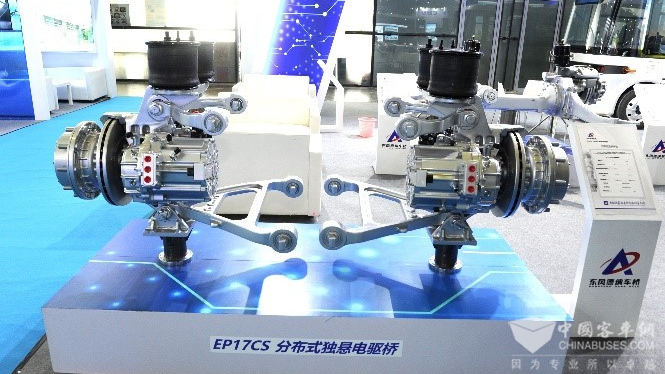 在城市公交市场,东风德纳开发的EP17CS分布式电驱桥,提供了行业领先的分布式双轮边电机布置,使得客车能够高度定制。全平地板,大通道,更是方便乘客上下车。四气囊结构独立悬架噪音更小、转向更稳定。