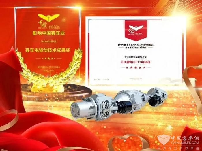 凭借上述产品为代表的新能源客车桥良好的市场表现,东风德纳先后摘得“中国商用车后市场最受终端欢迎品牌奖”“新能源客车电驱动技术成果奖”和“客车技术创新应用成果奖”等殊荣,得到行业专家和终端用户的双重肯定。2023年,东风德纳电驱桥销量同比增长近两倍。