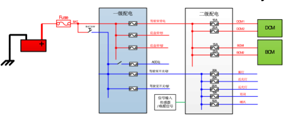 2、支持整车低压电气架构升级,将传统架构的两级配电升级成“一级供电+智能配电”方案,减少线束,支持整车智能化升级。