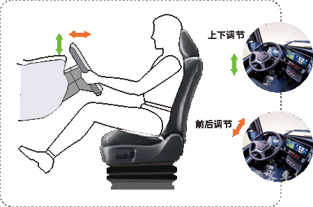 森鹏数字驾驶舱海外版方向盘、仪表、操作开关采用一体化随动结构设计,仪表台可上下前后四向调节,各种身材的驾驶员均可获得非常舒适坐姿。将所有需要司机操作的功能区开关固化在相同位置,所有的操作都可以在一个臂展之内完成,身体不需离开座椅靠背。完全符合人体工程学的现代设计理念,真正做到了呵护司机健康、方便司机操作,放松脊椎,远离颈椎、腰椎疾病。