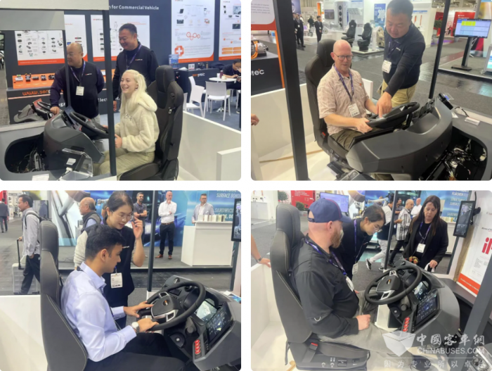 森鹏电子携数字驾驶舱海外版(海鸥2代)、搅拌车电动上装系统、商用车低压电控解决方案、智能交通系统、环卫车垃圾称重系统六大商用车数智化解决方案一经亮相,备受好评。其中数字驾驶舱海外版(海鸥2代)更是吸引了全球业界的高度关注。