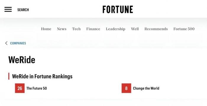 《财富》未来50强榜单揭晓 文远知行自动驾驶实力获国际认可