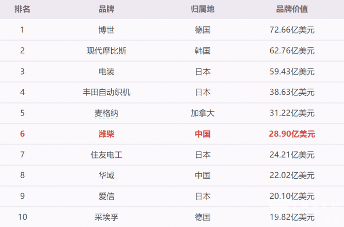 2025 全球汽车零部件品牌价值榜单出炉 潍柴实力上榜