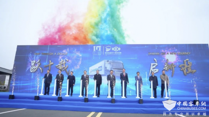 在激昂的音乐中,十位嘉宾共同触发能量柱,五彩烟幕与礼花腾空而起,象征东科克诺尔正式迈入新十年征程。未来,公司将聚焦智能驾驶、绿色技术及全球化布局,以创新之力持续引领商用车制动系统变革。