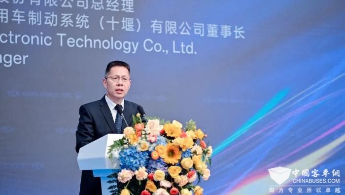 东风电子科技股份有限公司总经理、东科克诺尔商用车制动系统(十堰)有限公司董事长叶征吾在致辞中,将成就归功于政府支持、股东协同与员工奋斗。他表示,面对商用车智能化与低碳化浪潮,公司将以“创新、协作、务实、担当”精神深化布局,在技术革新、服务优化和人才培育上持续发力,打造可持续发展标杆。