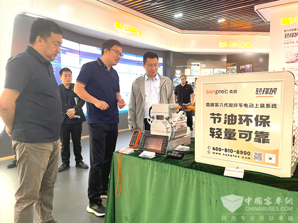 交付活动当天,智德电控李总一行参观了森鹏电子的展厅,深入了解了森鹏电子在商用车数智化领域的创新成果和发展历程。特别是森鹏搅拌车电动上装系统在推动混凝土运输行业绿色低碳高质量发展方面所做出的贡献,得到了李总一行的高度肯定。