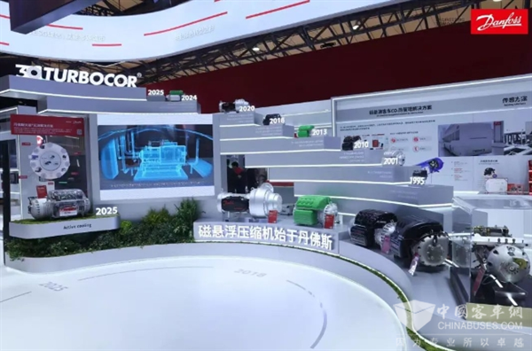 丹佛斯磁悬浮无油应用、轻型商用空调及热泵采暖、工业热泵、储能、数据中心、新能源客车CO₂热管理、丹佛斯传感方案等创新实践成为展台焦点。