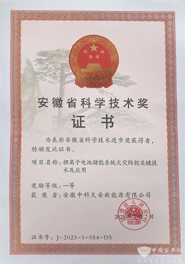 领跑锂电安全新赛道,中科久安斩获安徽省科技进步一等奖