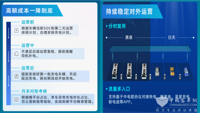 充电调度革新企业运营,分时复用创造双重价值!企业通过“自用优化+对外服务”双模式,实现 “一桩两用”,白天精准补电、夜间低谷蓄能,高效响应社会车辆补能需求。既保障公交运营刚需,又开拓公共收益增长点,构建新能源充电站运营的黄金平衡点。