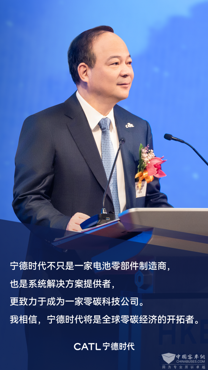 上市仪式上,宁德时代董事长兼CEO曾毓群发表《创新全球零碳科技,推动全球零碳经济》主题讲话,并从全球零碳交通、全球零碳电力以及全球产业新能源化三个领域,分别介绍了全球零碳经济的市场前景以及宁德时代零碳科技的布局。