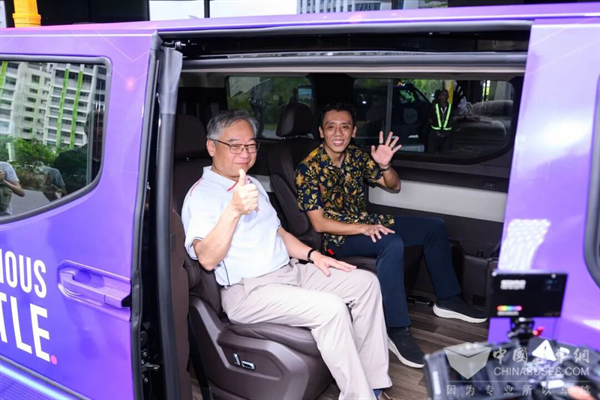(新加坡副总理颜金勇和新加坡交通部部长萧振祥在榜鹅试乘文远知行Robotaxi GXR)