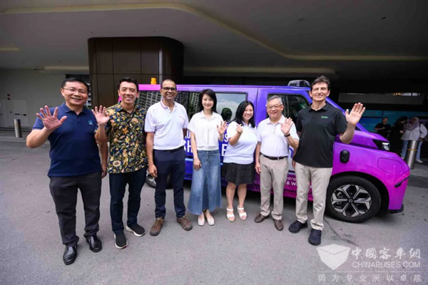(新加坡副总理等人在文远知行Robotaxi GXR前合影,右二为新加坡副总理颜金勇,左二为新加坡交通部部长萧振祥,左三为新加坡数字发展与信息部高级政务部长Janil Puthucheary,左四为新加坡交通部高级政务部长孙雪玲,右三为新加坡全国职工总会助理秘书长杨婉玲,右一为Grab总裁兼COO Alex Hungate,左一为文远知行新加坡总经理许开新)