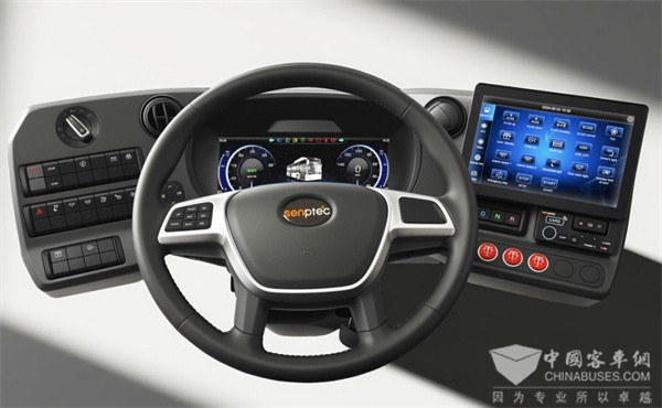 森鹏电动调节数字驾驶舱首次将乘用车的舒适性与智能化体验系统性地引入商用车领域。
