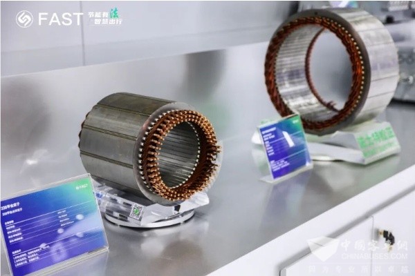 法士特松正展出两大高性能电机定子平台,采用扁线低谐波绕组技术和分段系列化设计,散热快、电耗低、兼容度高,整体具有功率密度高、输出扭矩大、爬坡能力强、过载能力强等优势,全面覆盖轻卡、重卡、农机及矿卡等商用车电动化场景。通过创新扁线技术、油冷散热等核心突破,法士特松正不断刷新电机功率密度与可靠性标准,为商用车电动化转型提供最优解决方案。