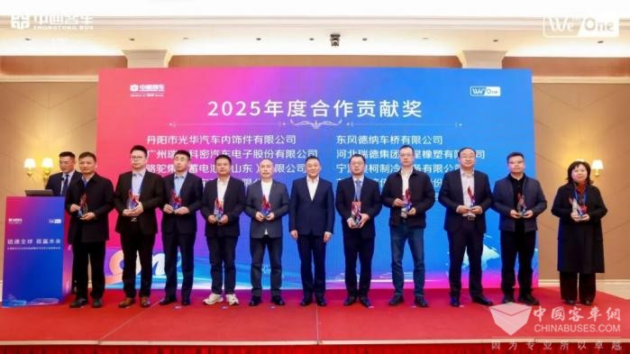 凭借在供应保障、技术创新以及协同合作等多方面的卓越表现,东风德纳车桥荣获中通客车2025年度“合作贡献奖”。本次荣誉的获得不仅是对东风德纳过往努力的高度认可,更象征着双方间合作迈向更高层次、更紧密的新阶段,为进一步拓展合作领域、深化合作内容奠定了坚实基础。