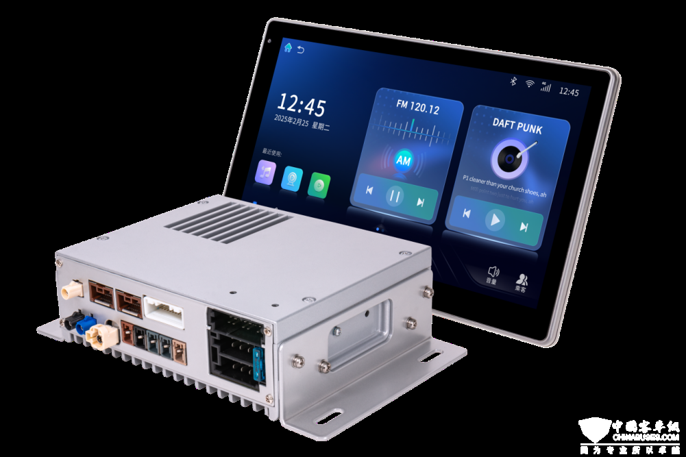 A20影音娱乐系统内置具备2T算力的高性能芯片,充足的算力储备保障了影音娱乐、手机互联、车身信息显示、倒车监控等常规中控功能的流畅运行,为驾驶安全增添多重保障。在应用场景拓展上,该系统核心设计聚焦公路客车使用需求,同时可根据卡车、物流车等不同商用车场景的功能诉求灵活适配,兼顾通用性与场景针对性,有效拓宽了产品应用边界。