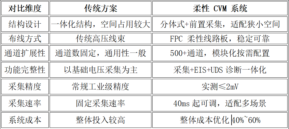 亿华通柔性CVM系统与传统方案关键指标对比: