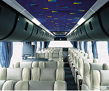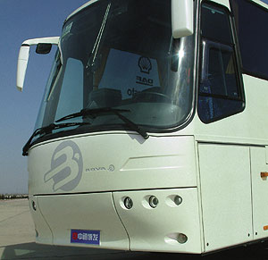 全承载式车身结构,进口高强度轻质材料,前后围、顶蒙皮为高强度玻璃钢覆盖件,车身自重大大减轻,整车仅重11.5吨,创造最轻客车整车自重。
