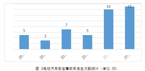 图 3电动汽车安全事故年发生次数统计(单位:例) 6