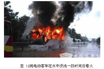 图 12纯电动客车在水中浸泡一段时间后着火 12