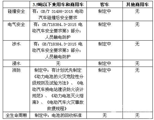 表 6目前电动汽车整车安全性标准与需求