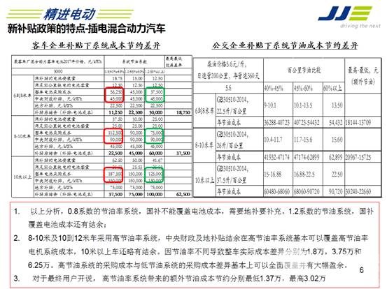 从新政策来看,我们总结一下,在插电式混合动力追求高效率、高节油率,能拿到最高的补贴,以最低电池容量获得最高的补贴,也降低了全社会综合成本,高节油率则进一步降低公交公司运营成本,这是非常关键的值。