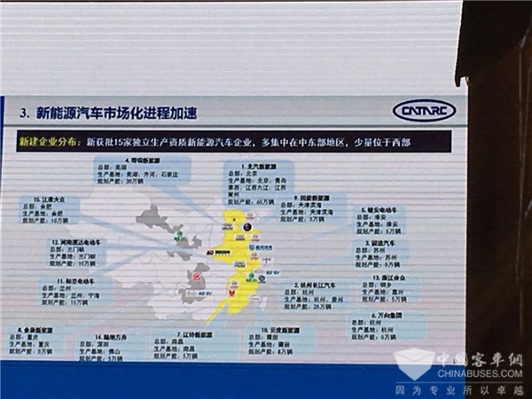 产业发展方面,我们整车在长三角、珠三角、西南地区、京津冀地区形成了四大产业聚集的板块。在国家政策的推动下,突破了过去对汽车轿车整车准入的管理,有一部分是整车企业的一个部门或者一个分公司的转变,大部分是原来不在汽车业内的互联网公司或者以前不是做汽车的企业,进入到新能源汽车轿车整车生产的行列。这给传统汽车产业带来很多活力,希望能够通过更多的新进入者,为新能源汽车的发展带来许多新的亮点。