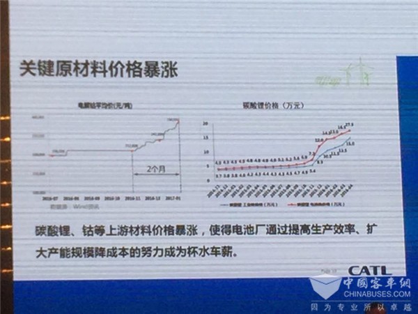 更何况我们认为这块的春天要等5年后,但是要活到春天,真的需要我们全产业链打造一个良性的循环,我们真正搞电池的人都知道,碳酸锂和钴都不存在供大于求的问题,碳酸锂和钴从多少涨到了多少?这是不可持续的。